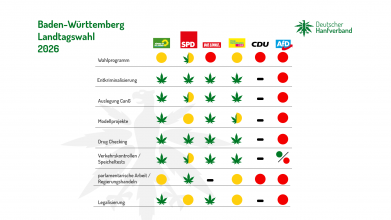 Am 08.03.2026 findet in Baden-Württemberg die Landtagswahl statt. Die zukünftige Regierung wird weiterhin erheblichen Einfluss darauf haben, wie das Bundesland mit Anbauvereinigungen umgeht oder sich bezüglich der Einrichtung von Modellprojekten positioniert. Daher haben auch Landtagswahlen konkrete Auswirkungen für Hanffreunde in den betreffenden Bundesländern. Wir haben für euch wie immer die drogenpolitischen Positionen in den Wahlprogrammen […]